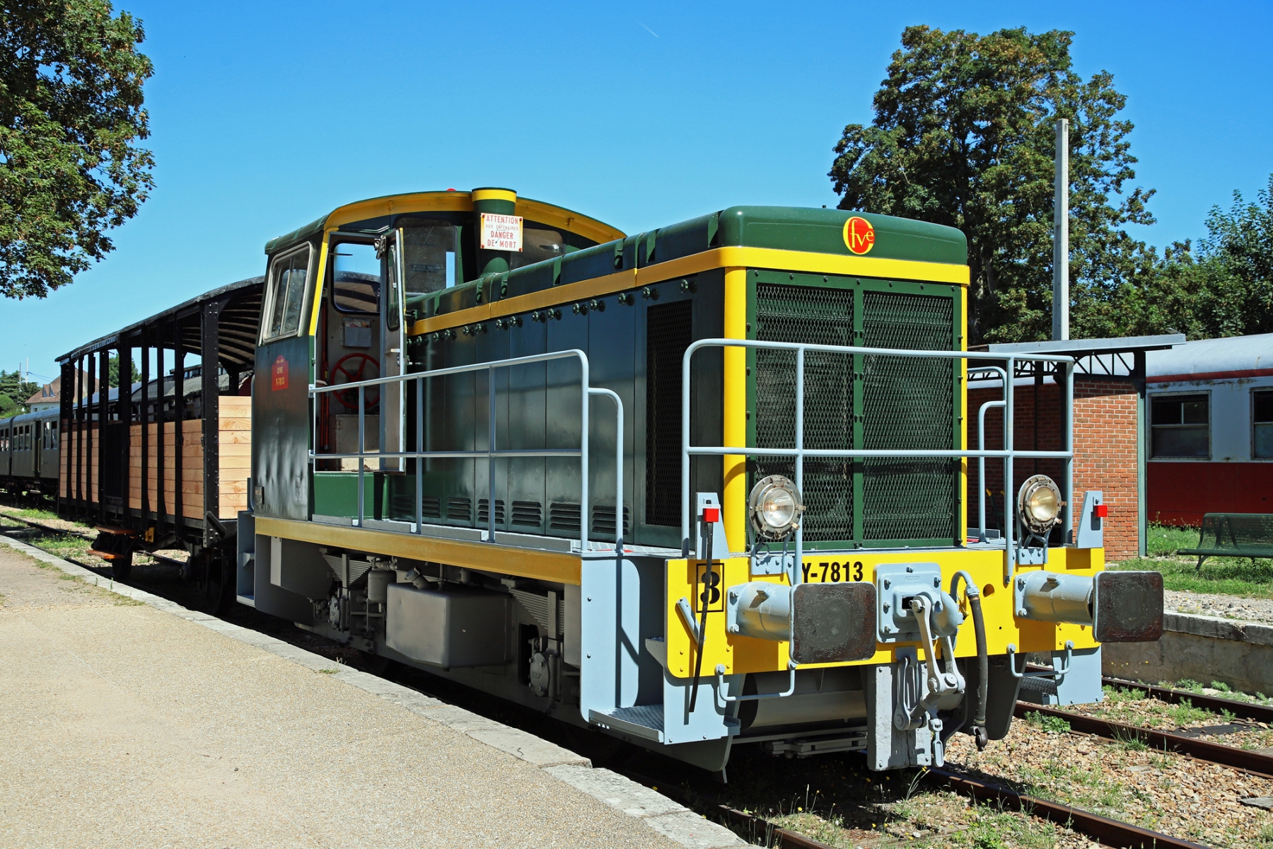 Le locotracteur Y7813 fait partie de la série Y7800 produite par Moyse à partir de la fin des années 1950. Compact et agile, ce petit engin diesel est spécialement conçu pour les manœuvres dans les gares, dépôts et embranchements industriels. Facile à manipuler grâce à sa taille réduite et à sa cabine offrant une excellente visibilité, le Y7813 est un précieux témoin du patrimoine industriel ferroviaire.